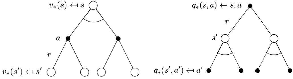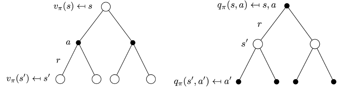 RL에서는 벨만 방정식을 주로 Backup diagram으로 시각화하여 표현한다.
